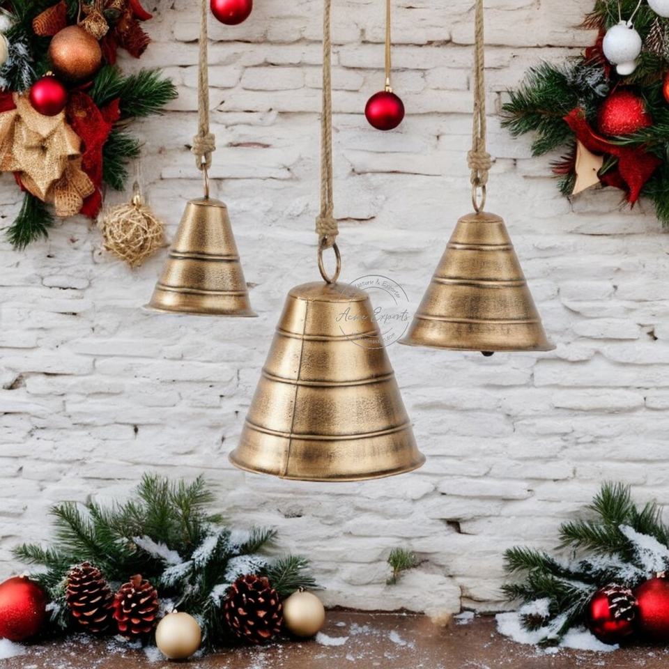 Handcrafted Indian Cow Bells Antique Gold Finished Small Metal Bells with Rope Handle Antique Church Bells for Christmas Decor