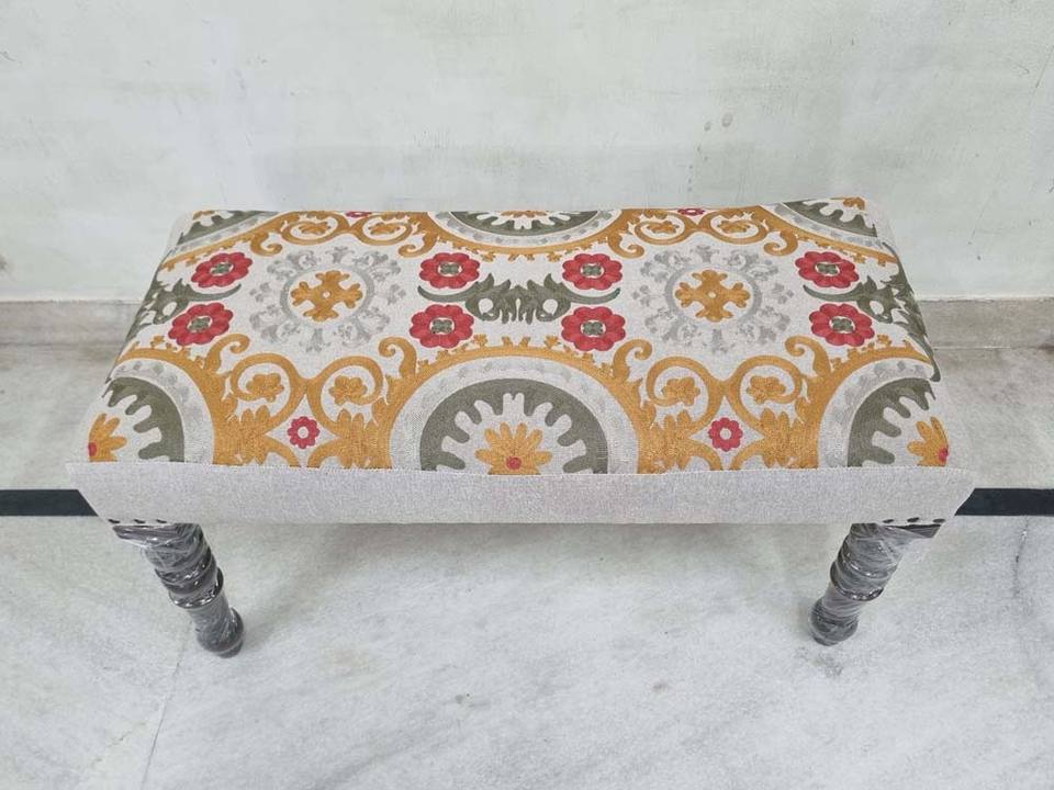 Handcrafted Indian Style Embroidered Upholstered Bench for Boho Living Room Wooden Furniture for Hotel Decor