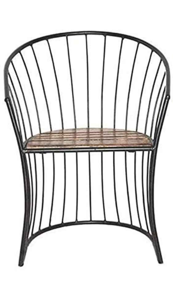 Handcrafted Iron Garden Chair Curved Backrest Solid Wood Slatted Seat Comfortable for Outdoor School Kitchen Use Portable for