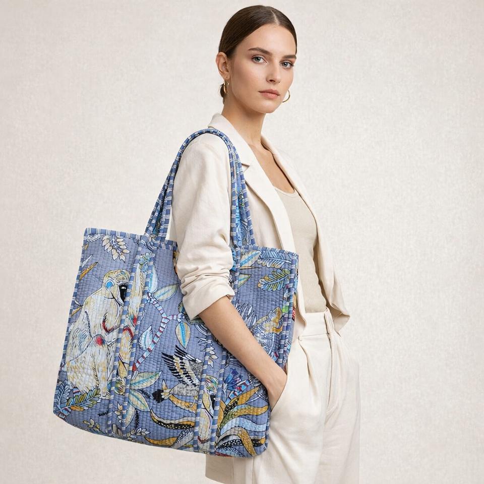 Handcrafted Jungle Animal Quilted Tote Bag - Sustainable Cotton Carryall