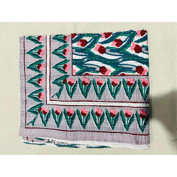 Handcrafted Kantha Quilt Cotton Bedspread Made Using Block Printing Techniques Offering Breathable Fabric And Decorative Appeal