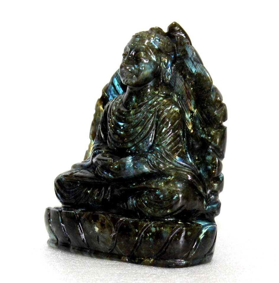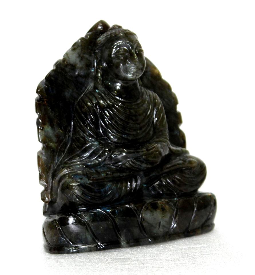 Handcrafted Labradorite Gemstone Carving Sculpture of Buddha Statue Natural Crystal Healing Stone Carved Technique