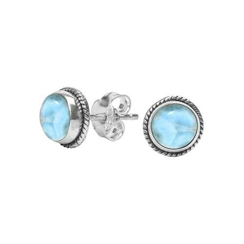 Handcrafted Larimar Stud Earrings | Sterling Silver Rope Edge Design, Elegant Gemstone Jewelry for Everyday Style