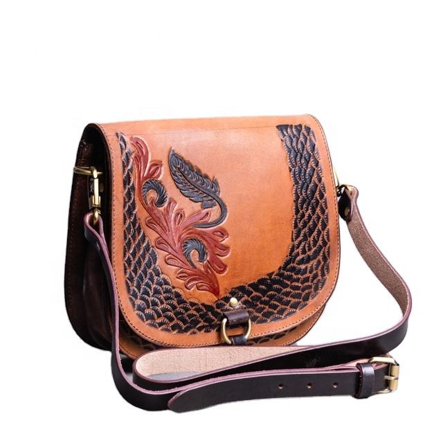 Handcrafted Vintage Leather Sling Bag 100% Real Handmade Fashionable Summer Autumn Spring Ladies' Bag Engraved Design for