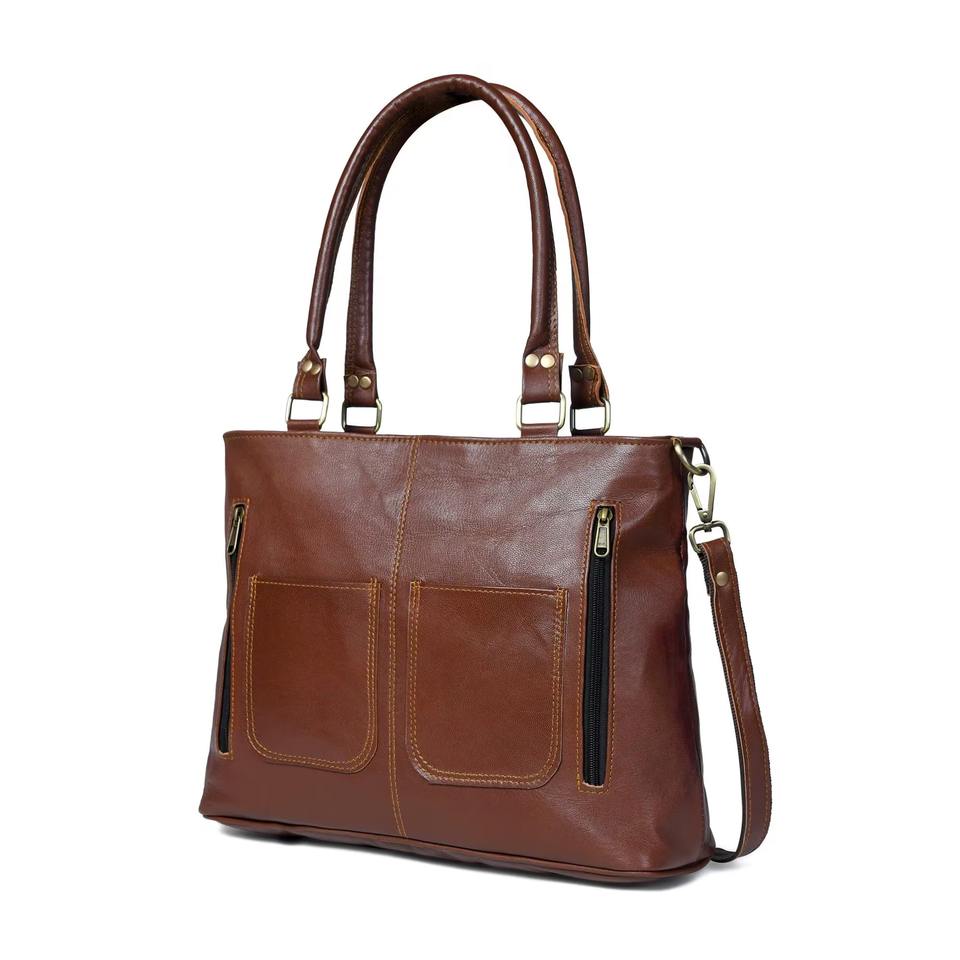 Handcrafted Genuine Leather Premium Quality Womens Shoulder Laptop Messenger Tote Bag Customizable Zipper Open High Quality