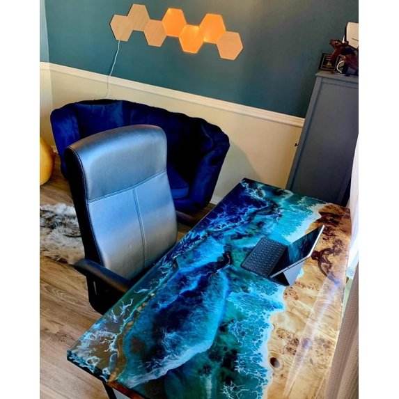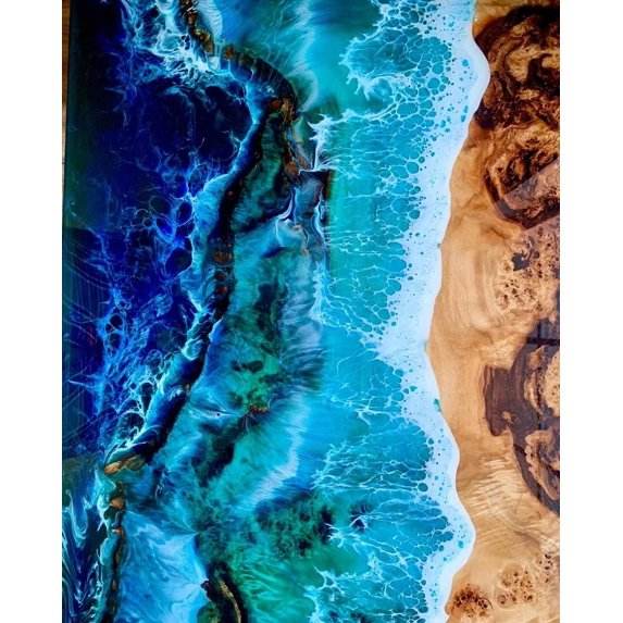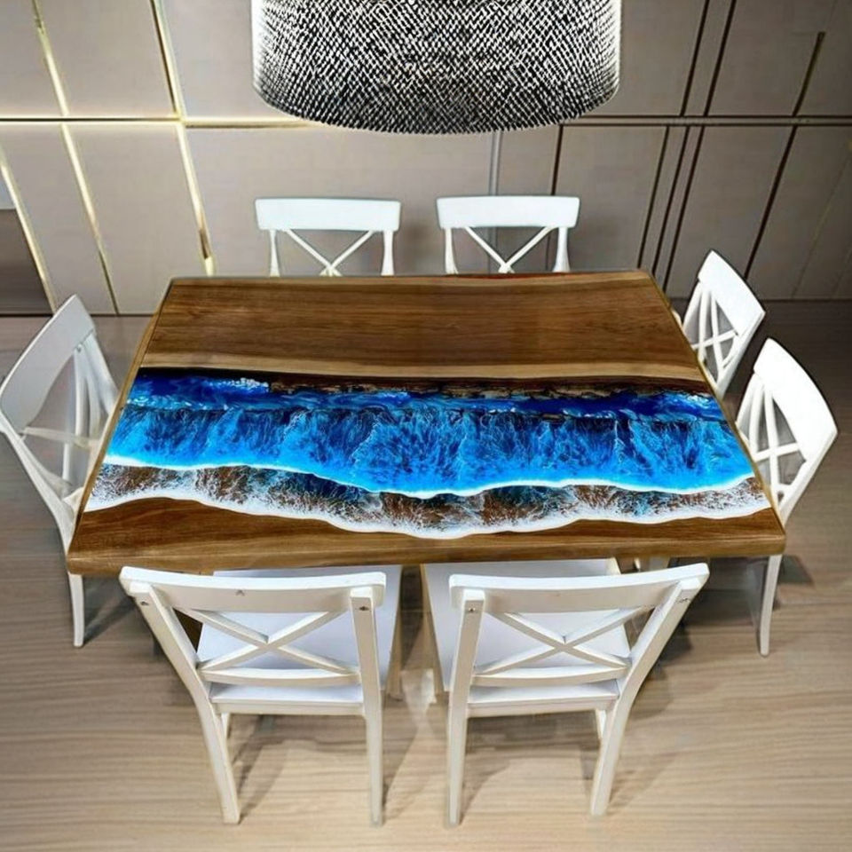 Handcrafted Live Edge Acacia Wood Rectangle Modern Waterproof River Table Warm Tone Resin Dining Table