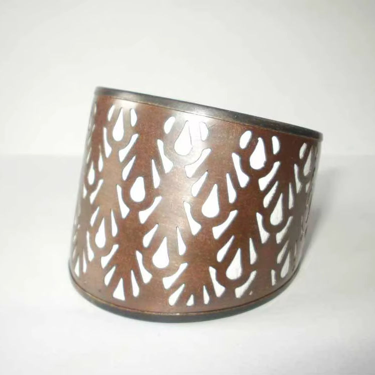 Handcrafted Luxury Antique Copper Cuff Bracelet With Elegant Geometric Diamond Cutout Design Rustic Metal Bangle For Women High