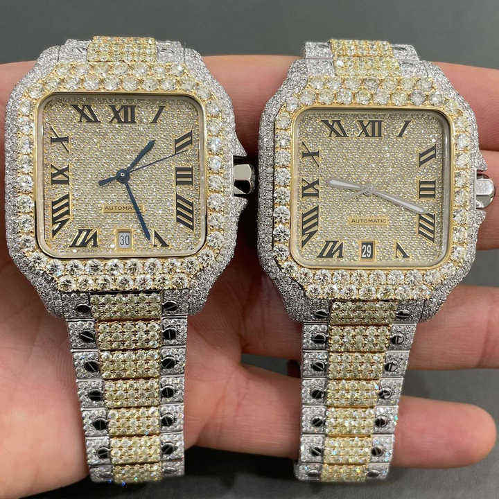 Handcrafted Luxury Men's Moissanite Watch High Quality White Two-Tone Automatic Wristwatch with Hip Hop Style Square Case