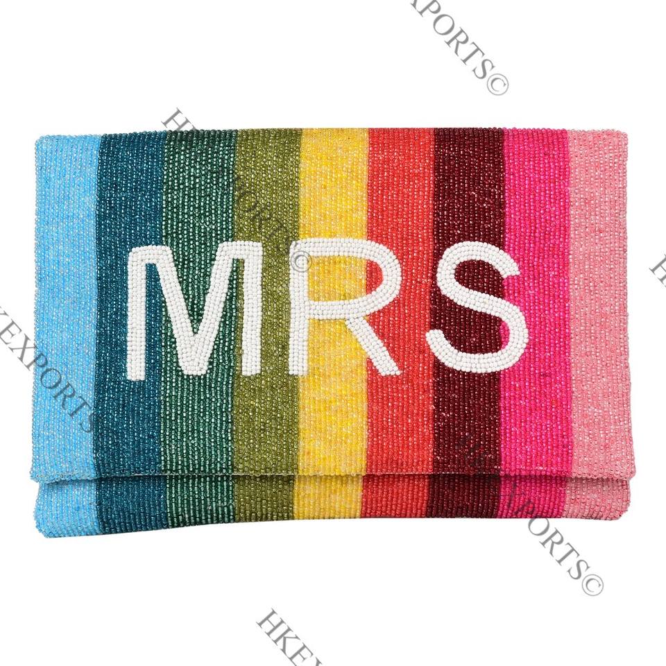 Handcrafted MRS Multicolor Beaded Clutch for Weddings Vibrant Zipper Closure Bride Accessory with Sequined Decoration MOQ 3pcs