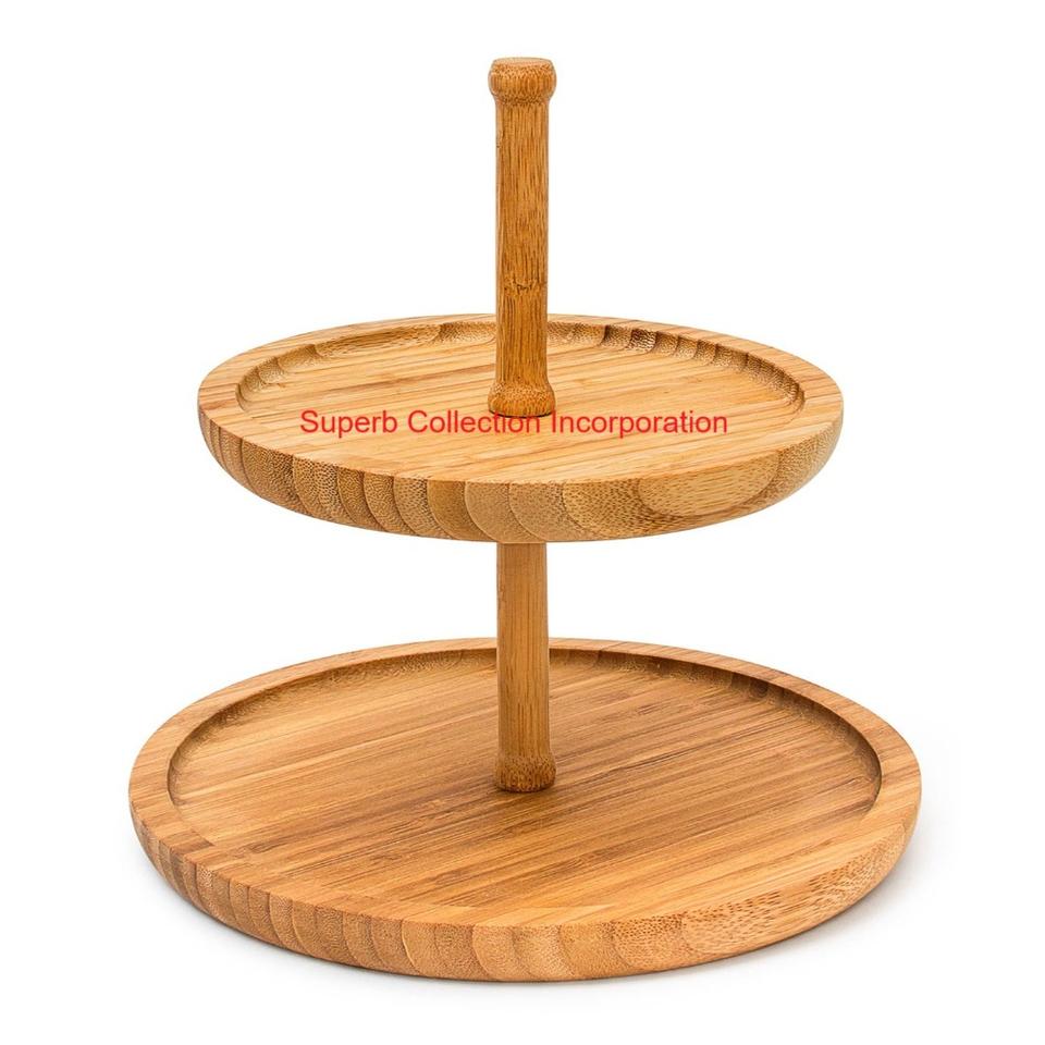 Handcrafted Mango Wood 2 Tier Cake Stand For Desserts Cupcakes And Fruits Decorative Platter With Metal Handle For Home Decor