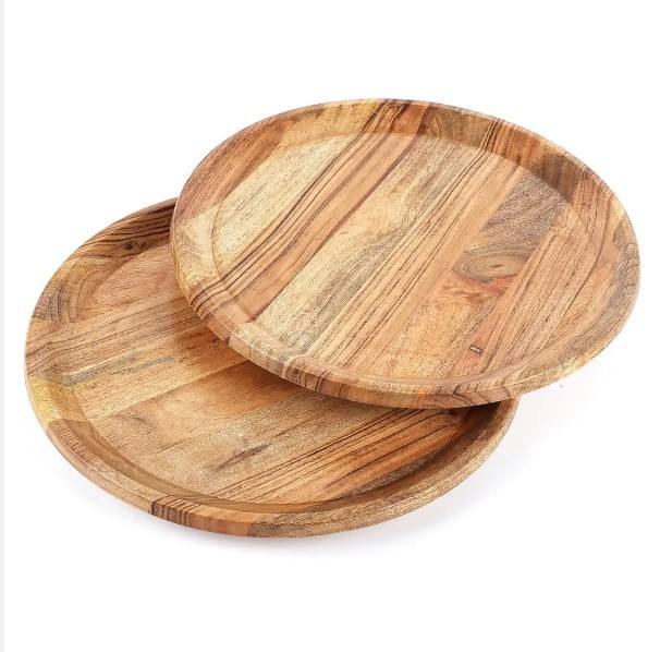 Handcrafted Mango Wood Serving Platter Antique Wooden Tray for Home Decor Fruit Charcuterie Appetizer Round Dinner Plates Set