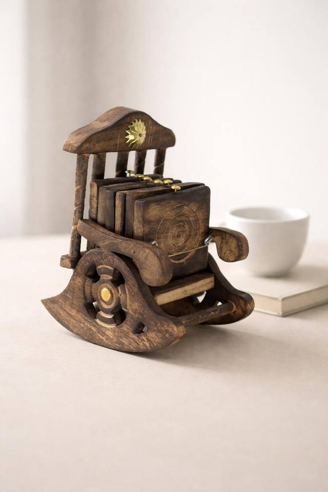 Handcrafted Mango Wooden Rocking Chair Tea Coaster Set - Rustic 6 Plate Design for Home Décor & Gifts