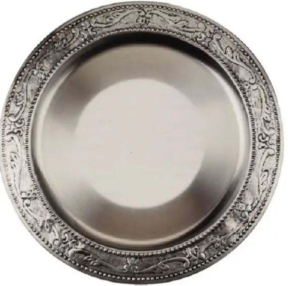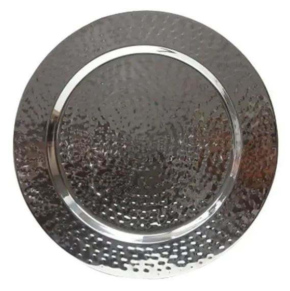 Handcrafted Metal Charger Plate Made in India Checkered Theme with Logo Printed American Dinnerware Serving Display