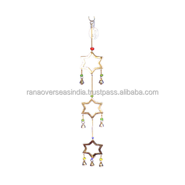 Handcrafted Metal Star Wind Chimes With Bell and Beads for Home or Outdoor Decor Available at Many Size and Design