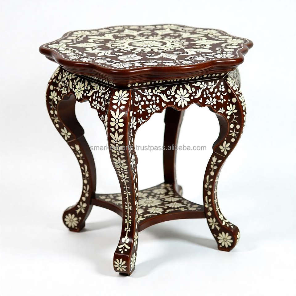 Handcrafted Modern Bone Inlay Round Wooden Accent Table Intricate Floral Pattern Elegant Addition Your Home Office Bedroom Decor