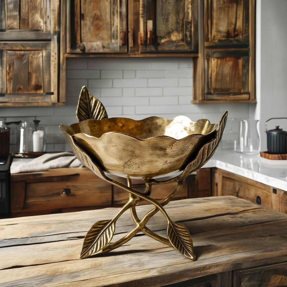 Product name:Handcrafted Antique Brass Pedestal Bowl with Leaf Base