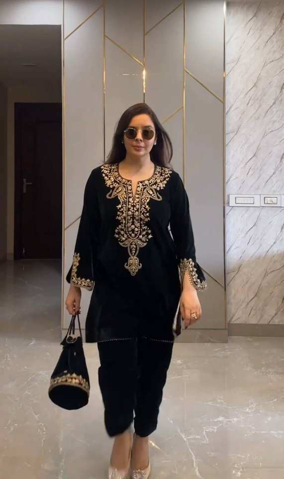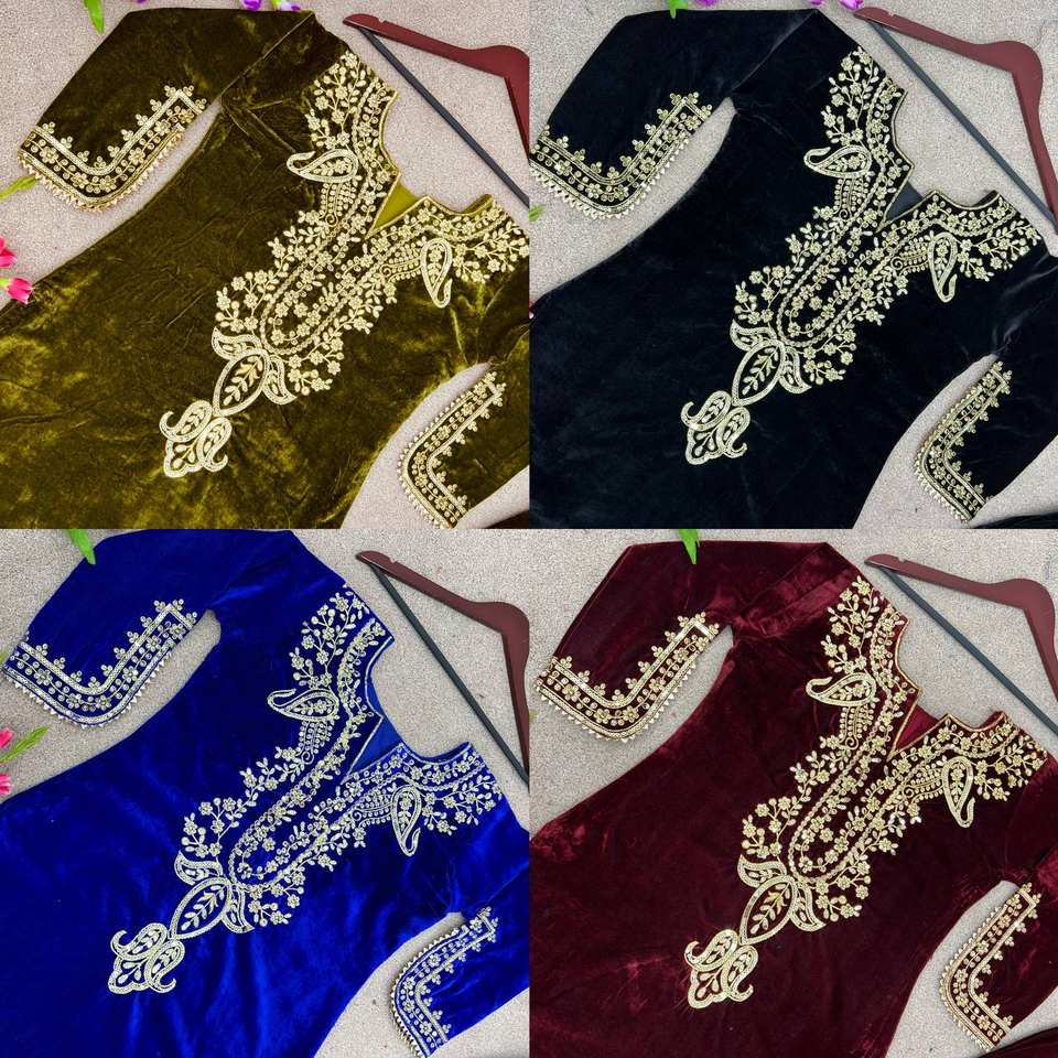 Top Fabric:Heavy Viscose Velvet With Heavy Embroidery Work With