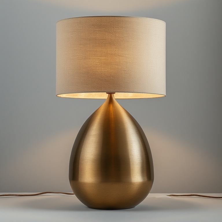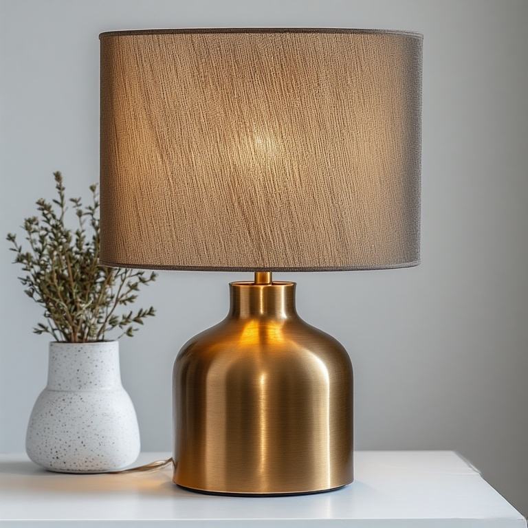Handcrafted Modern Rustic Brass Table Lamp Elegant White Fabric Shade Simple Design Eye-Caring Halogen Light Eco-Friendly AC