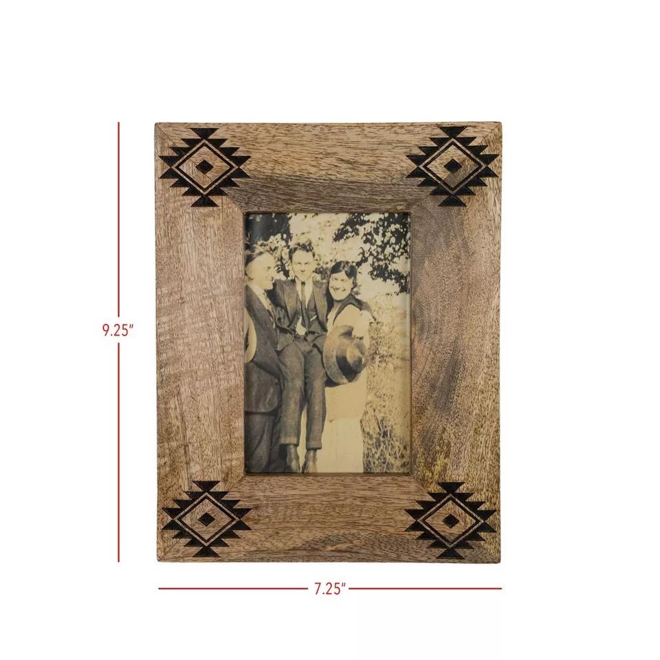 Handcrafted Modern Wooden Photo Frame Tribal Geometric Engraving Stylish Rustic Decor for Living Room Bedroom Iron Customized