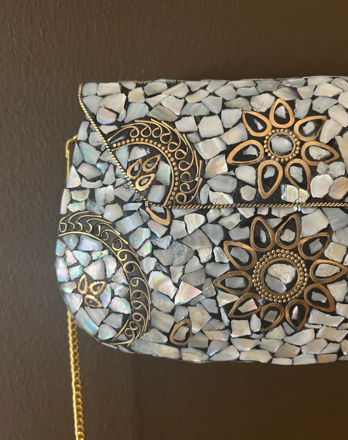 Handcrafted Mosaic Green Clutch Purse Sling Bag Thanksgiving Gift Chip Stone Metal Sling Purse true testament by LUXURY CRAFTS