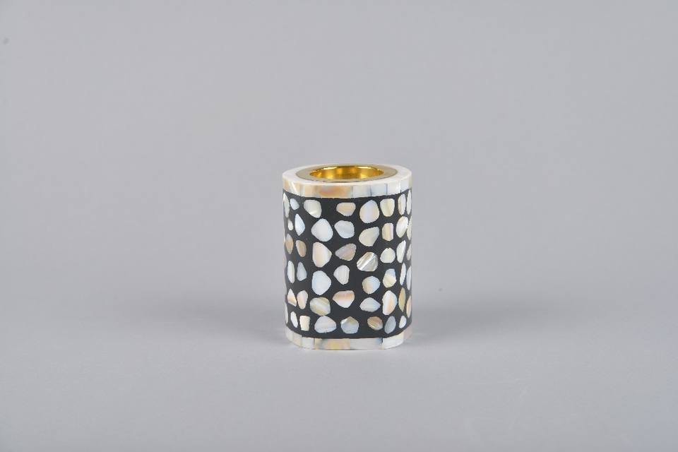 Handcrafted Mother Of Pearl Inlay Bakhoor Burner Cylindrical Design Black Resin White Shell Mosaic Incense Holder Home Fragrance