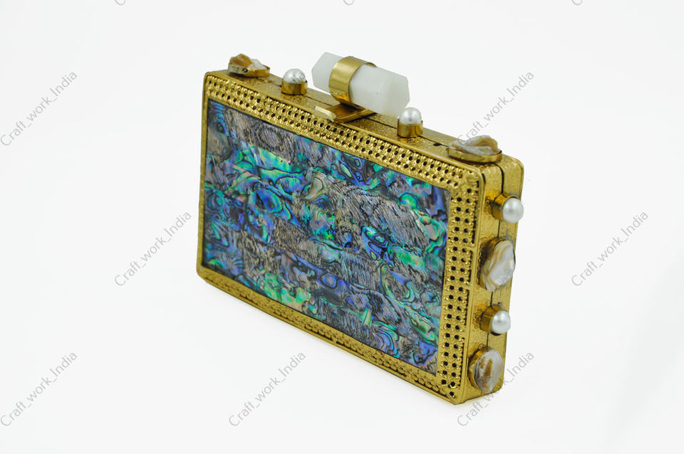 Handcrafted Mother of Pearl Abalone Shell Clutch Bag with Brass Frame Luxury Evening Wedding Party Handbag for women