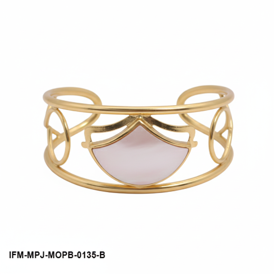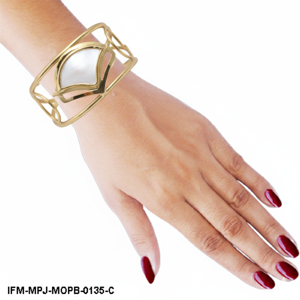 Handcrafted Mother of Pearl Brass Cuff Bangle White Shell Inlay Geometric Statement Bracelet Boho Chic Jewelry for Women