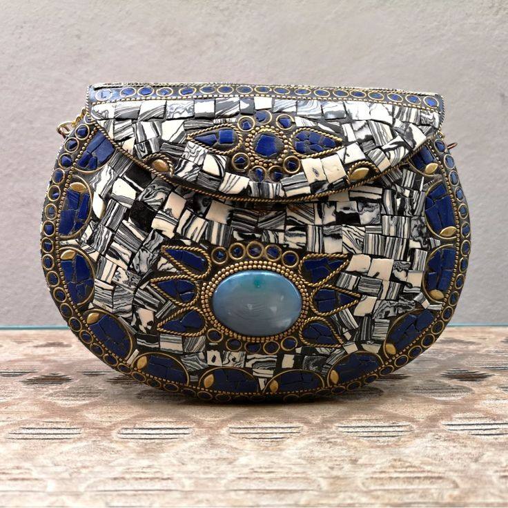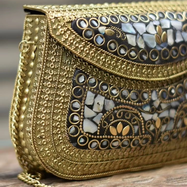 Decorative MOP and Wood Sling Bags with Shoulder Straps Hand Crafted for Gifting and Office Use in Stylish Designs