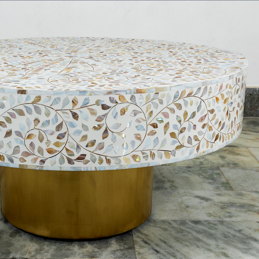 Handcrafted Mother of Pearl Inlay Coffee Table Modern Stylish Design Luxury Table for Elegant Home Interior Decor