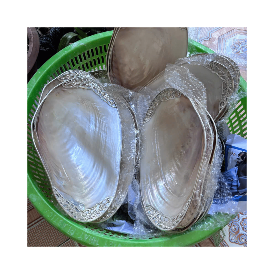 Handcrafted Mother of Pearl Tray dish nacre mosaic on wooden frame for perfume stand and dresser styling, made in Vietnam