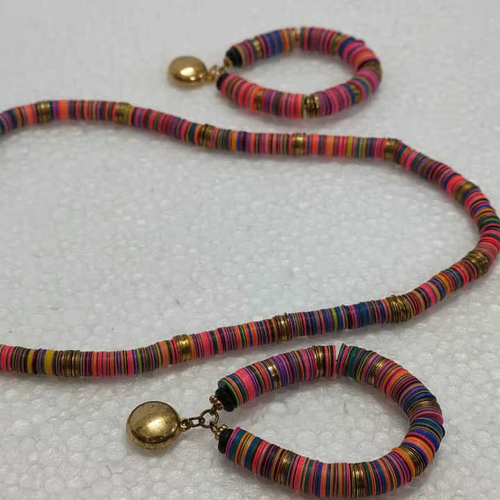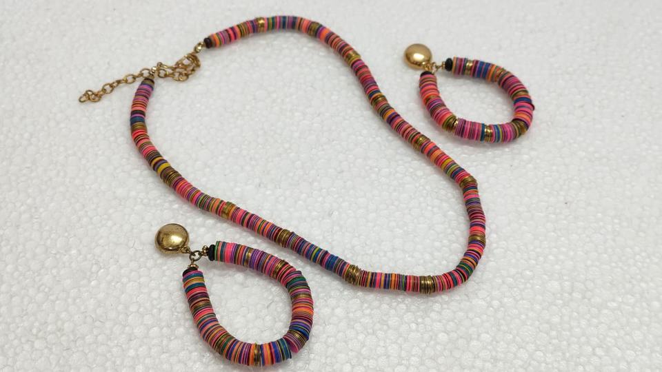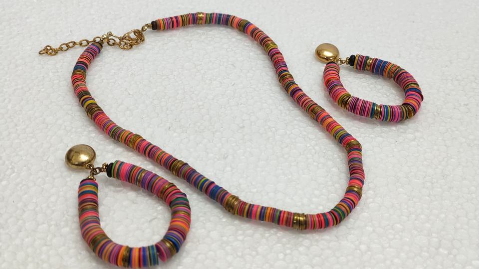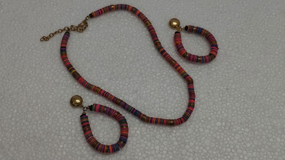 Handcrafted Multi-Color Bone Bead Necklace and Earrings Set-Conifer Handmades Ethnic Jewelry