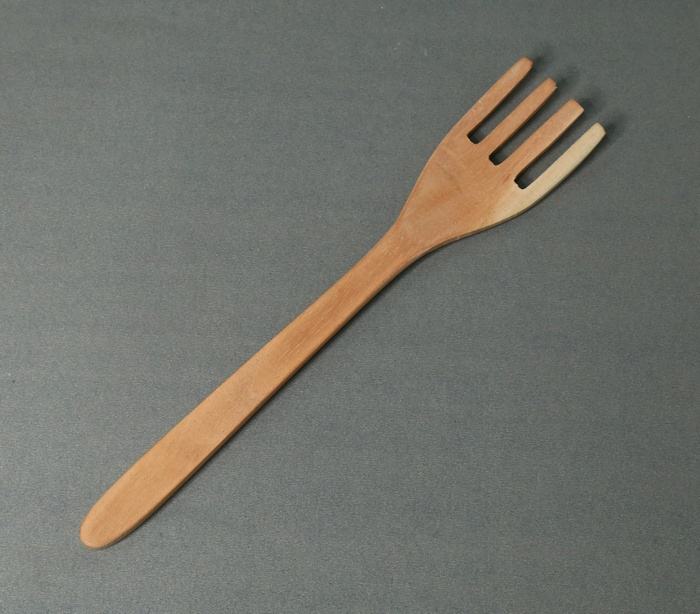 Handcrafted Natural Honey Tone Wooden Salad Serving Fork With Long Ergonomic Handle Large Four Tine Mixing Utensil For Kitchen