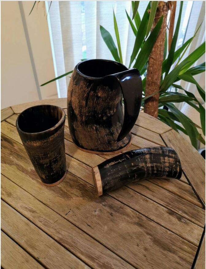 Handcrafted Natural Horn Mug Polished Natural Ox Horn Drinking Vessel for Medieval Norse and Rustic Available for Best Price