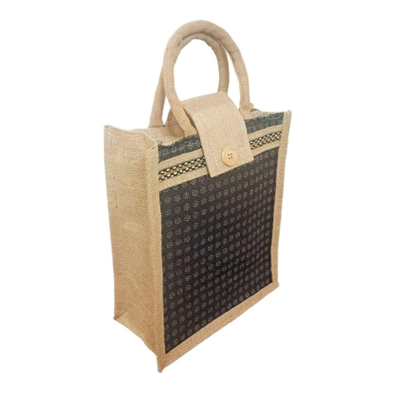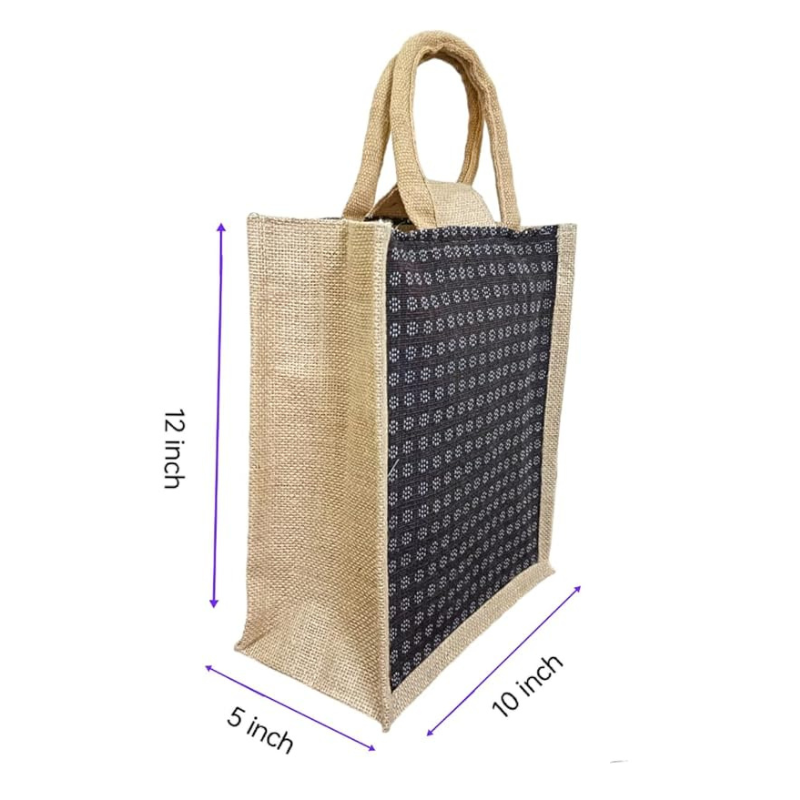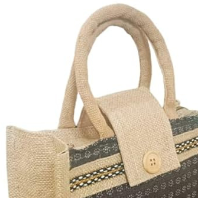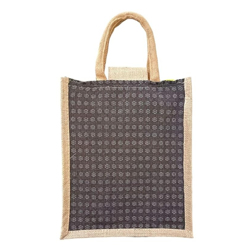 Handcrafted Natural Jute Shopping Bag Black Pattern Zipper Closure Fashion Style Durable Eco Tote for Women Retail Stores Made