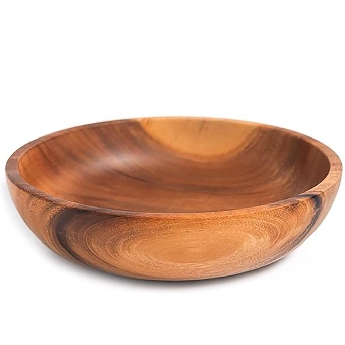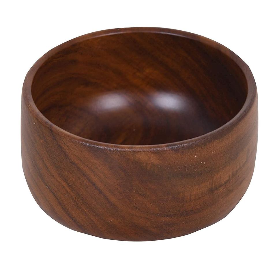 Handcrafted Natural Polished Wooden Bowl for Kitchen & Dining, Eco-Friendly Food-Safe Round Wooden Bowl for Salads & Snacks