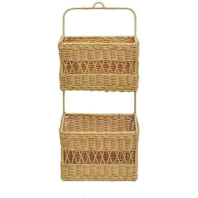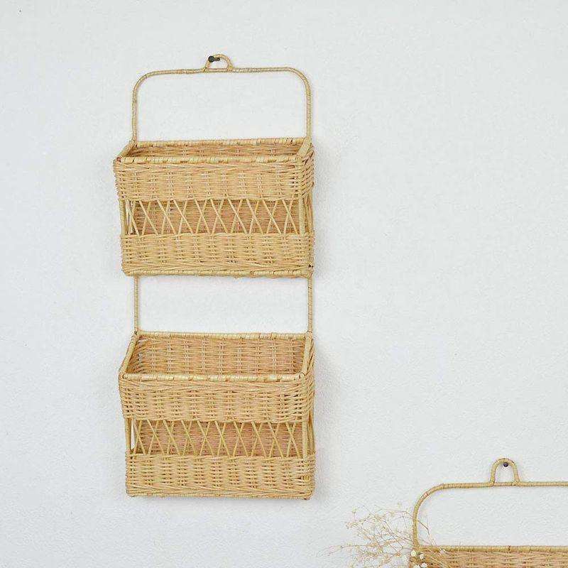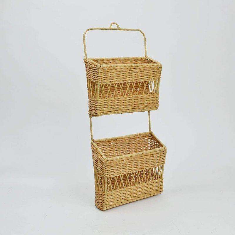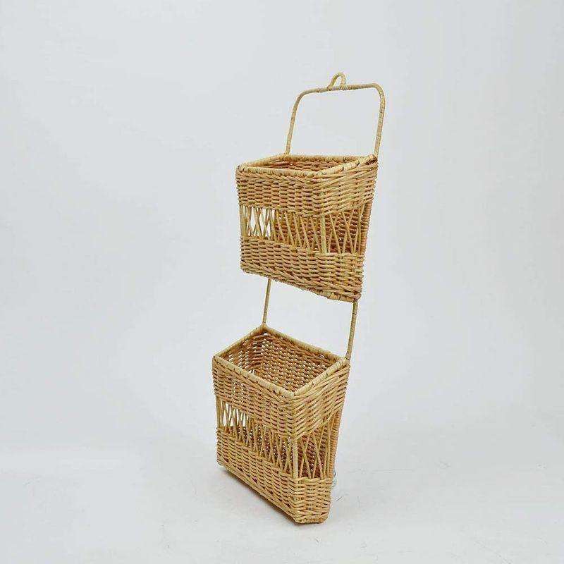 Handcrafted Natural Rattan Wall-Mounted Storage Basket Dual Compartments Asian Zen Style Hanging Organizer Kitchen Living Room