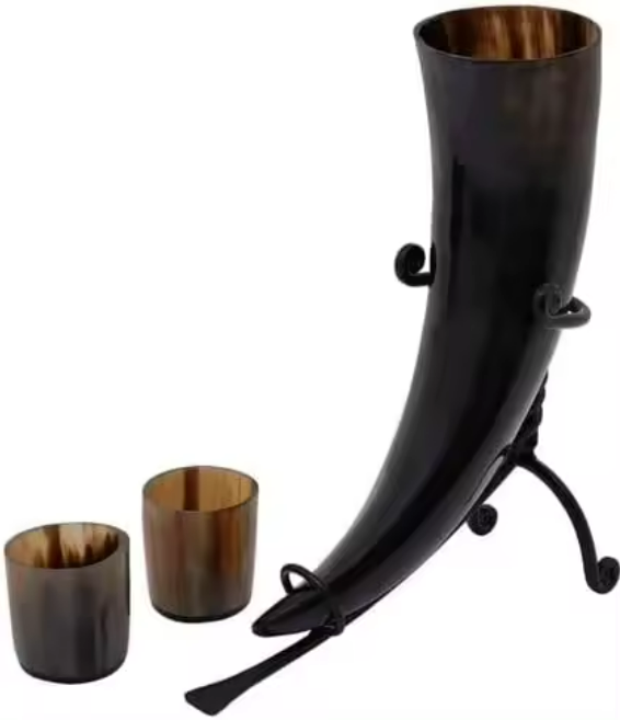 Nique Engraved Stainless Steel Tumbler Agate-Like Finish Historic Drinking Horn Metal Stand Party Gift for India Enthusiasts