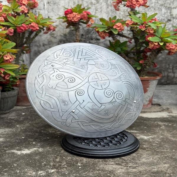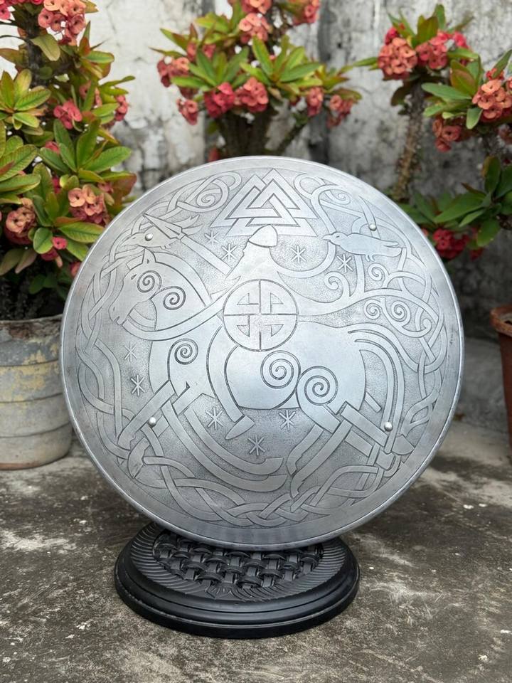 Handcrafted Odin Wall Decor Viking Shield Norse Mythology Aluminum Art Deco Round God Wall Art & Cosplay Easy Hanging
