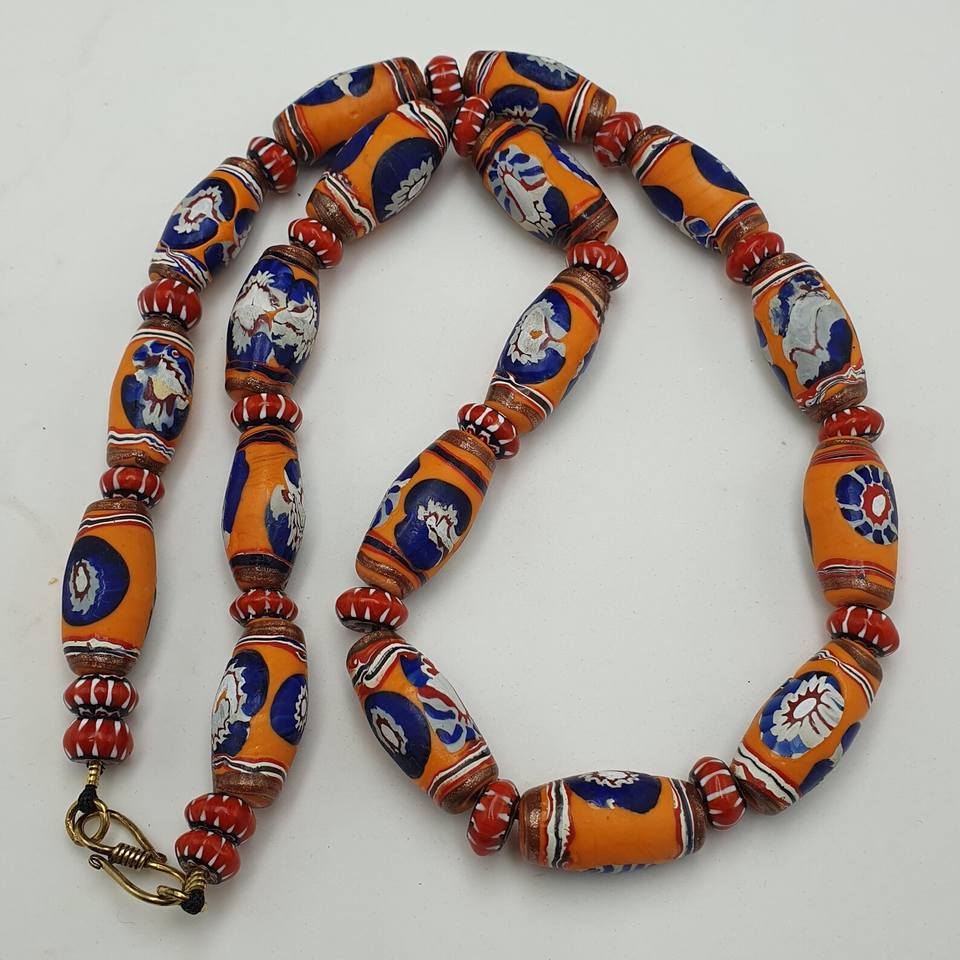 Handcrafted Orange & Blue Glass Beads Unique Vintage Face Design for Jewelry Making Wholesale Bulk Supply Crystal Lampwork Beads