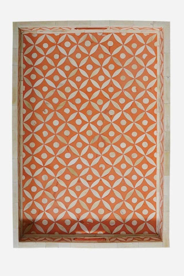 Handcrafted Orange Bone Inlay Tray Traditional Design Luxury Decorative Serving Plate Home Organizer Display Tray From India