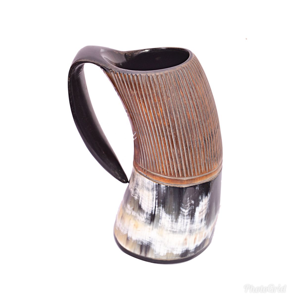 Handcrafted Original Viking Drinking Horn Tankard Half Carved Natural Crafts Beer Mug with Handle
