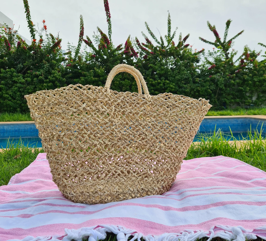 Mode:Handcrafted Palm Leaves Market Basket