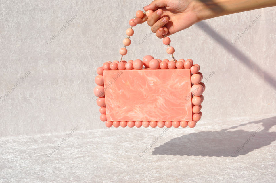 Handcrafted Peach Resin Beaded Clutch Bag Luxury Evening Party Handbag For Women Wedding Bridal Cocktail Events