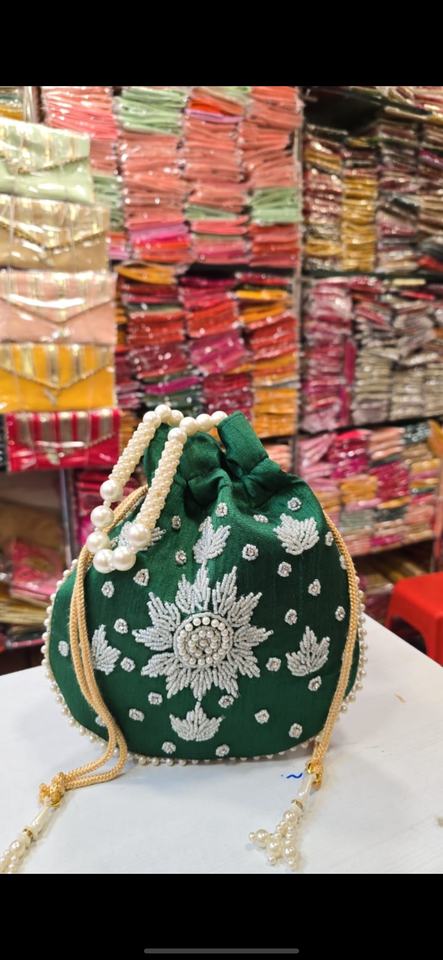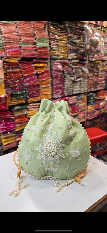 Handcrafted Pearl Embroidered Potli Bag for Weddings Festive Gifting Traditional Occasions beautifully adorned pearl embroidery