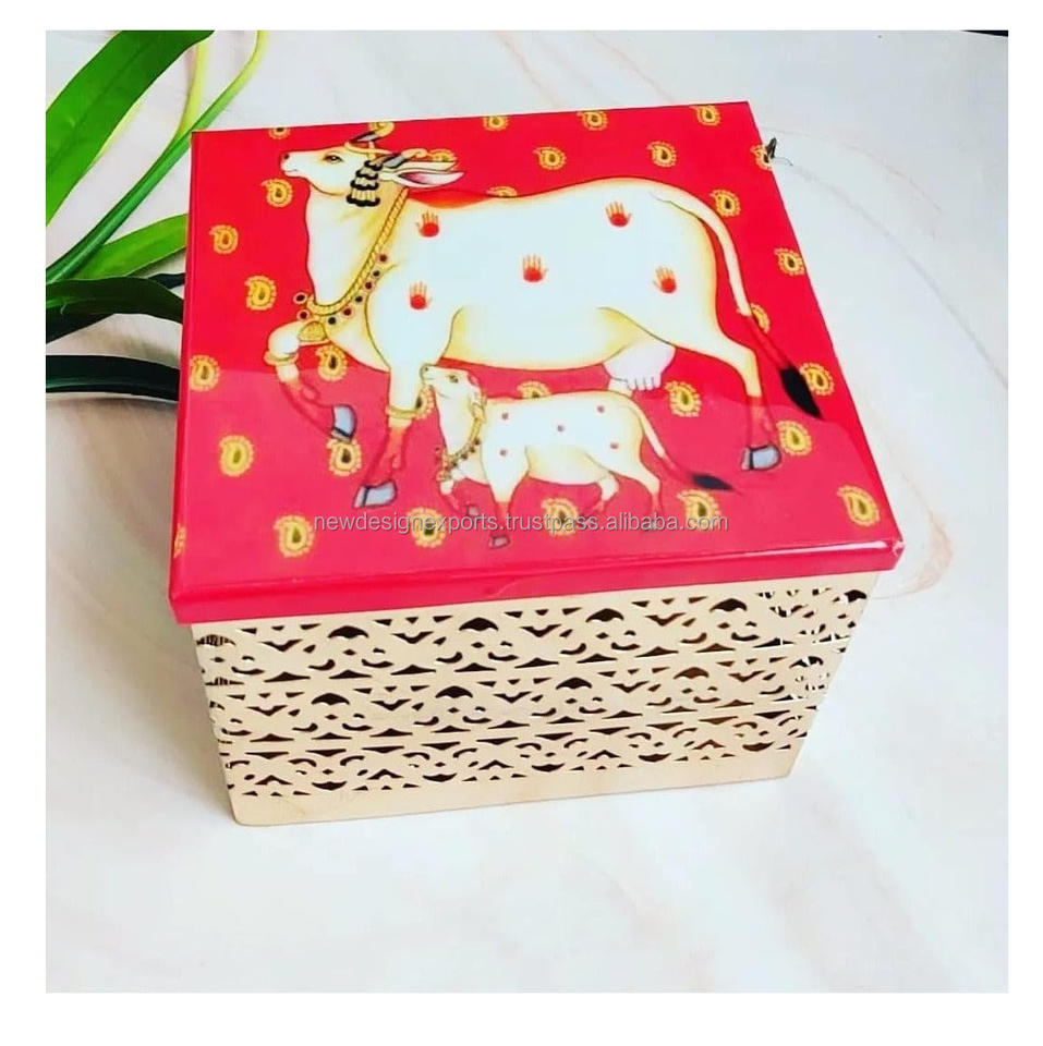 Handcrafted Pichwahi Cow Metal Storage Multipurpose Gifting Box-Unique Metal Container Cover (2 Cow) Eco-Friendly Custom Color