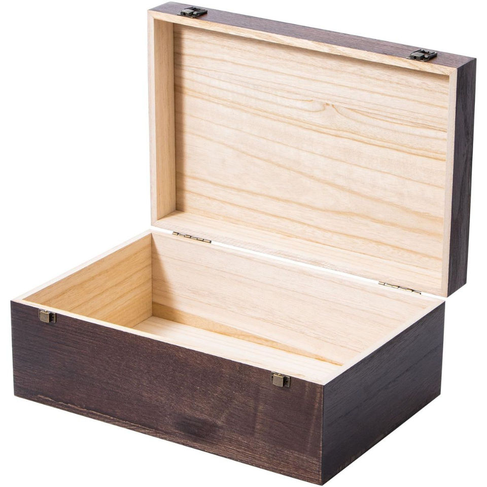 Handcrafted Pine Wood Storage Box With Hinged Lid And Metal Clasp Two Tone Decorative Keepsake And Jewelry Organizer