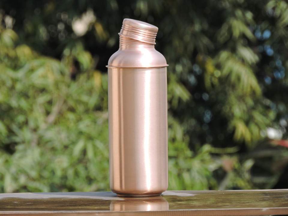 Handcrafted Polished Copper Sports Bottle Double Wall Eco-Friendly Metal with Lid Eco-Friendly Drinkware