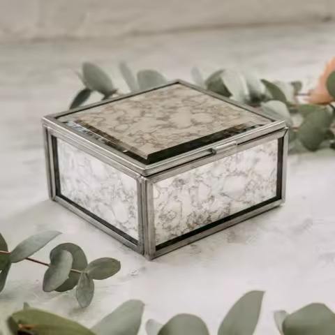 Handcrafted Premium Metal Mercury Glass Trinket Jewelry Storage Boxes Rectangular for Gifting