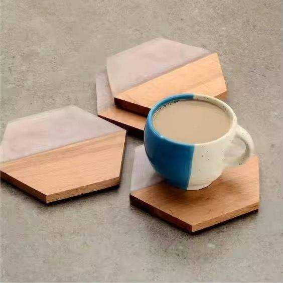 Handcrafted Premium Round Set of 4 Elegant Wood Coasters Durable Drink Mats for Home Decoration
