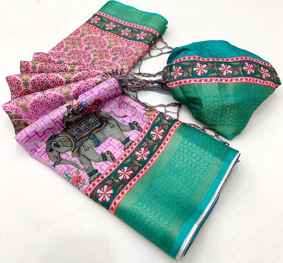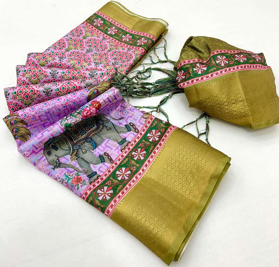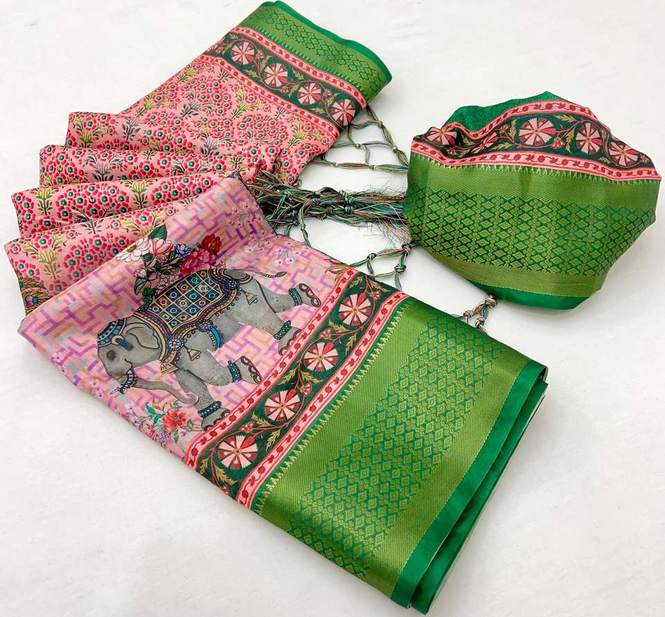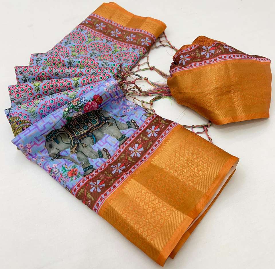 Work:jacquard with Digital printed Pallu with Contrast matching border